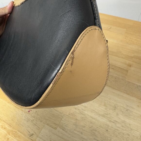 Lovecat Paris Y2K Leather Shoulder Bag 2 Tone Bow Scalloped Black Tan 90s 1990