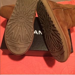 These uggs are extremely comfortable and perfect for any day.. The neutral color makes it easy to wear with anything! They are very worn hence the price but def still has life in them.. Please refer to previous post for more info was sold but not shipped due to being away.. Size 5 in kids but fits a size 7 in women