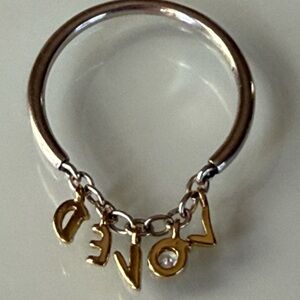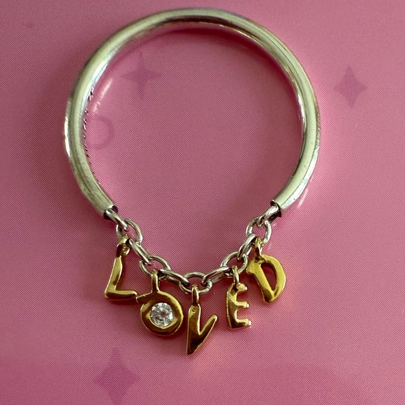 Authentic Love script ring💕 in great condition. This is two tone 925 sterling silver and gold plated.