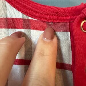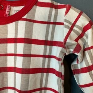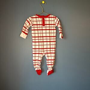 GUC l’ovedbaby Christmas morning plaid footie. One teeny pinhole at back neckline from the store tag, no other flaws. Size 6/9m