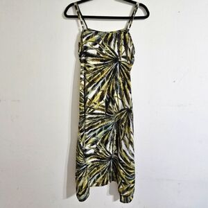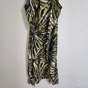 excellent condition size medium spaghetti straps midi length tie front palm tree print