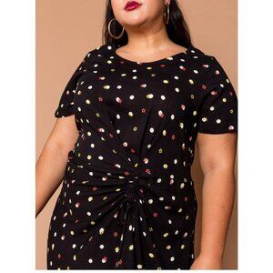 Lovefool The Everyday Ruched Dress Women's Black Delia Dot Print Rayon Size 2X