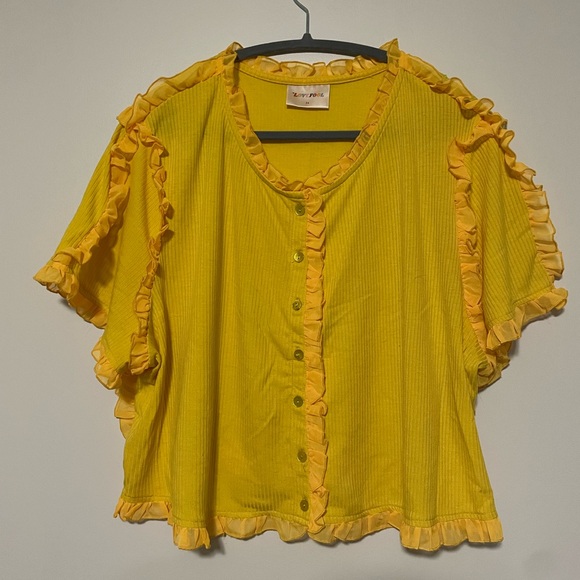 bust 44in waist 44in buttons are decoration and cannot be opened ruffle detail has no stretch