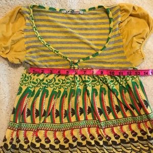 Loveholic Fun Pattern Top Cap sleeve Yellow with colorful pattern No sizing tag but measurements pictured, fits like a small Smoke free home
