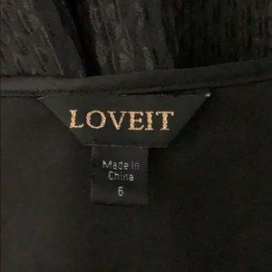 Beautiful black, silky top attached to a wool blend bubble skirt