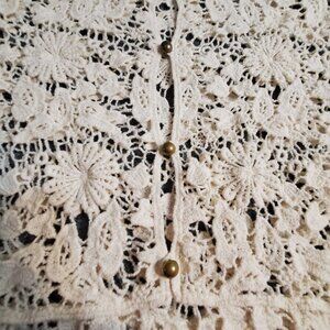 Lovely 153 Crochet Scoop Neck Cotton Tunic Top Cream Ivory Sheer Over Shirt Small