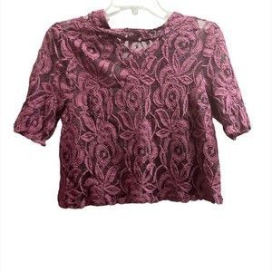 Lovely 153 Purple Lace Short Sleeve Crop Top