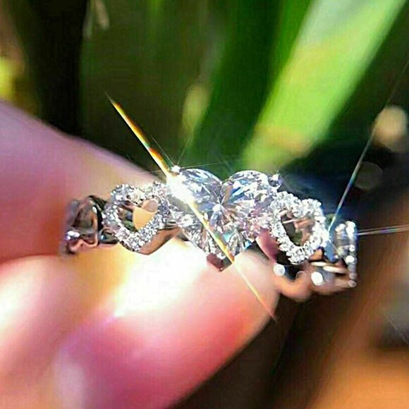 🌸Lovely Anillos Hollow Heart Diamonds Eternity Wedding Ring for Women, K828
