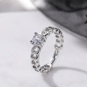 😍Lovely Anillos Hollow Heart Round Cut Moissanite Eternity Ring for Women, K770