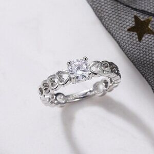 😍Lovely Anillos Hollow Heart Round Cut Moissanite Eternity Ring for Women, K770