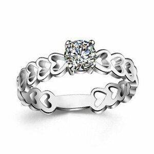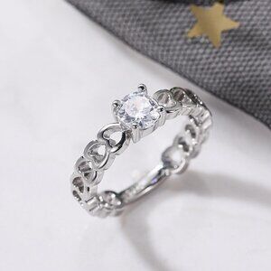 😍Lovely Anillos Hollow Heart Round Cut Moissanite Eternity Ring for Women, K770