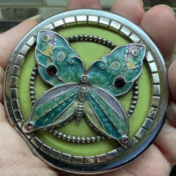 Brighton Jeweled Butterfly Compact 2 Sided Mirror With Magnified Mirror Also