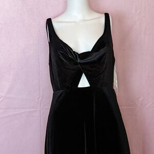 Lovely Black Velvet V Neck Sleeveless Cut Out Long Bridesmaid Dress size 8