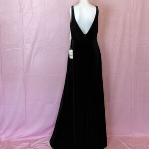 Lovely Black Velvet V Neck Sleeveless Cut Out Long Bridesmaid Dress size 8