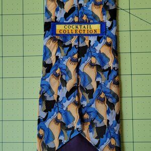Lovely Blue & Tan Abstract Necktie by The Cocktail Collection - Silk