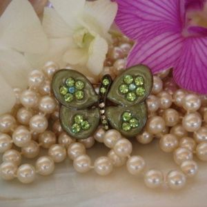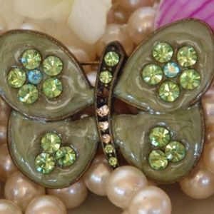Lovely Butterfly Brooch Green Enamel and Crystals