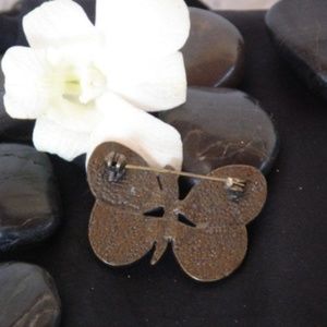 SUNY Butterfly Brooch, Enamel and crystals Green and light blue. Collectors Brooch.So lovely! A quality butterfly brooch. It features a flower motiff in the wings, with green crsytals and a light blue center crystal. The crystals are all intact and so is the Brooch.It looks like a stone is missing but is a play of light. A classic green enamel cover the body of this brooch. 1 inch wide. Brooch bouquet anyone? I am always finding new items for my store, please have a look!