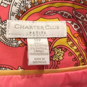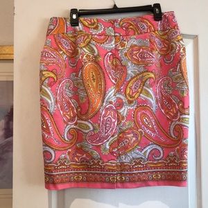 Charter Club, Lovely Coral Paisley Print Skirt. The skirt has pockets zipper on the back, it’s lined and it has a slit on the lower back.
