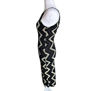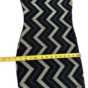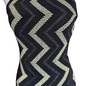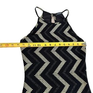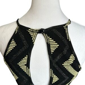 Lovely Day Black Cream Zigzag Print Sparkle Metallic Halter Midi Dress Size S
