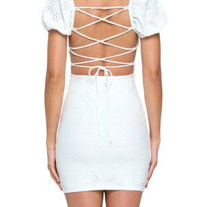 Lovely Day Lace Up Eyelet Mini Dress Ivory White Size Large NWT