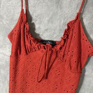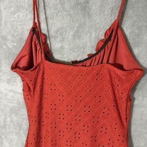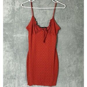 Lovely Day Mini Dress Small Red Milkmaid Tie Babydoll Spaghetti Strap Y2K Eyelet