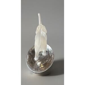 Lovely Frosted Elephant On Crystal Base With Raised Trunk.