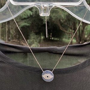 Round Gold Evil Eye in clear and blue stones on Rose Gold Chain