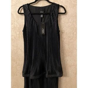 Elegant black sleeveless maxi dress with a textured pleated design.