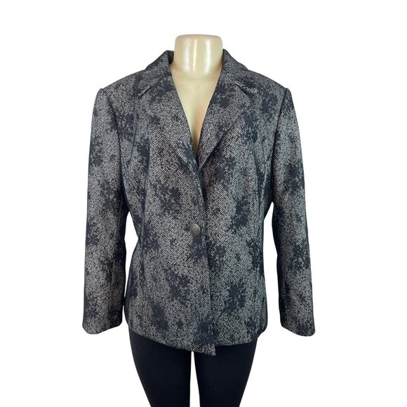 Lovely Gray & Black Floral Patterned Blazer Jacket Women’s