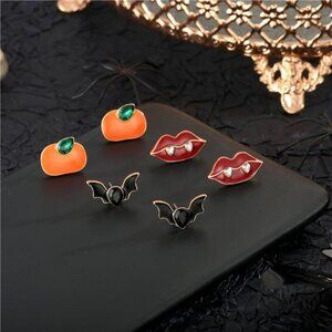 Lovely Halloween Stud Earrings Set | Pumpkin, Vampire Bat & Lip Designs.