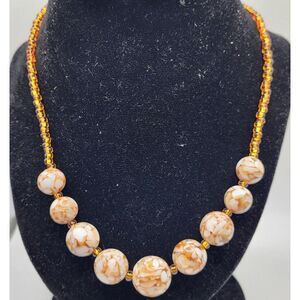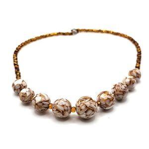 Lovely Handmade Gold and Brown Graduated Bead Necklace 19in