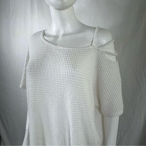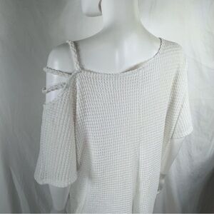 Lovely J Waffle Weave Asymmetrical Strappy Shoulder Tee