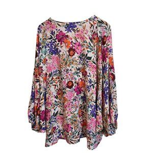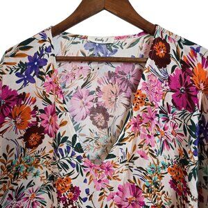 Lovely J Women's Blouse Balloons Sleeves Floral Deep V neck Multicolor Medium New
