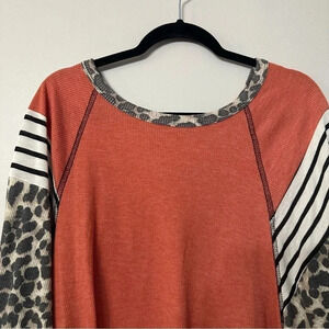Lovely J Women's Color Block Stripe and Cheetah Long Sleeve Top Size XL GUC