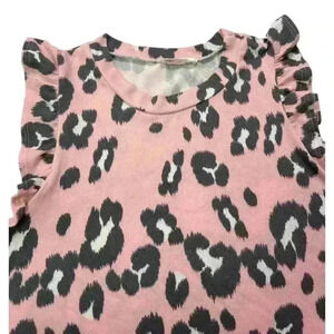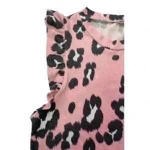Lovely J Women's Pink Leopard Print Top With Flutter Sleeve SIZE-LARGE