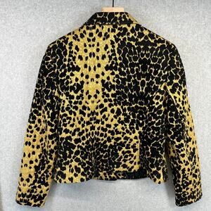 Lovely Jacket Womens Size 12 Tan Black Polyester Blend Leopard Print Button Up