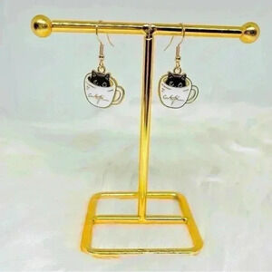 Lovely Kitty In A Coffee Cup Earrings