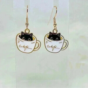 Adorable cat in coffee cup earrings