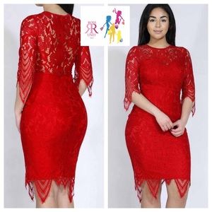 Half sleeves detailed see-through lace dress with soft lining under. Zipper on the back.