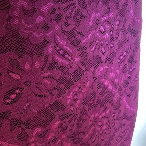 Lovely feminine stretchy lace dress in wine color. Very nice, elegant and pretty. Excellent condition. Size 6