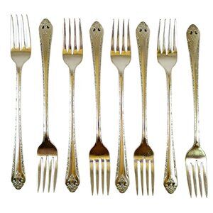 Lovely Lady Grille Forks (Set of 8) Vintage Holmes & Edwards Inlaid Silverplate