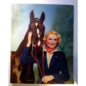 Lovely Lady Horse Art Print Vintage 1940s Lithograph Women Equestrian Artwork