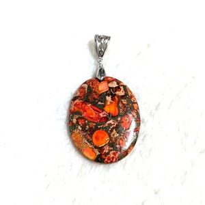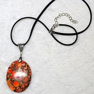 Lovely Large Oval Painted Jasper Necklace/Pendant on Black Adustable Cord