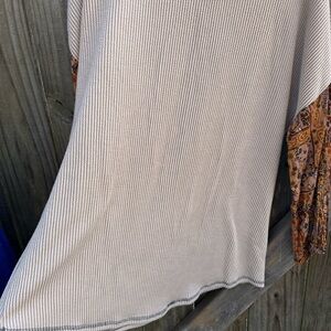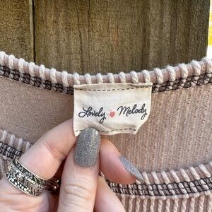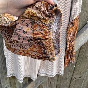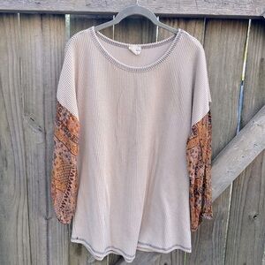 Lovely Melody Boho Mixed Media Ribbed Knit Lightweight Bubble Sleeve Sweater Top