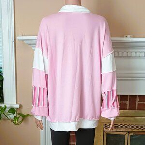 Lovely Melody Long Sleeve Top XL Pink & Stripe Collared Exposed Seam Blouse