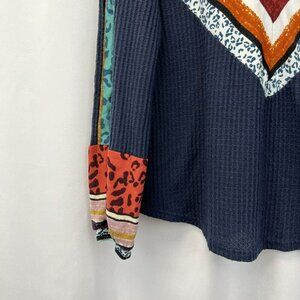 Lovely Melody V-Neck Multicolor Multi-Pattern Lightweight Sweater Size Small