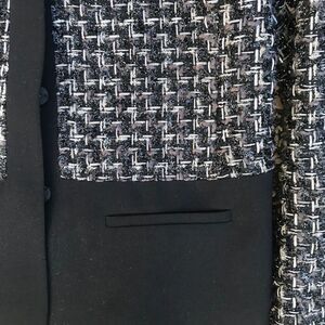 Excellent condition with shiny silver metallic threads in silver and black. Lovely design. Marked size 8. Bust 38. Sleeves 23.5. Length 23 inches.