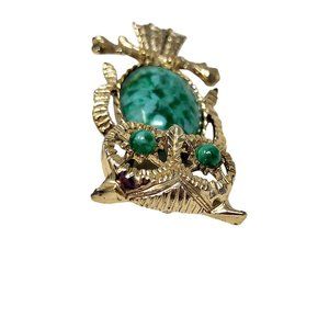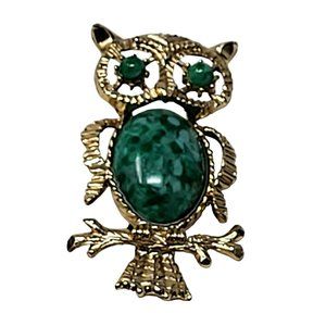 Description: Lovely OWL Brooch Gerry's Vintage Pin Gold Filled Blue Faux Stones Jewelry 7711