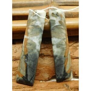 These are two long rectangle-cut Picasso Jasper stones, fully polished and pre-drilled at the lighter end to accept your choice of setting!
