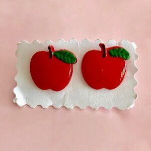 Lovely red apple stud earrings for women. New without tags. Plastic apples earrings; 0.5“ diameter. Metal closing.